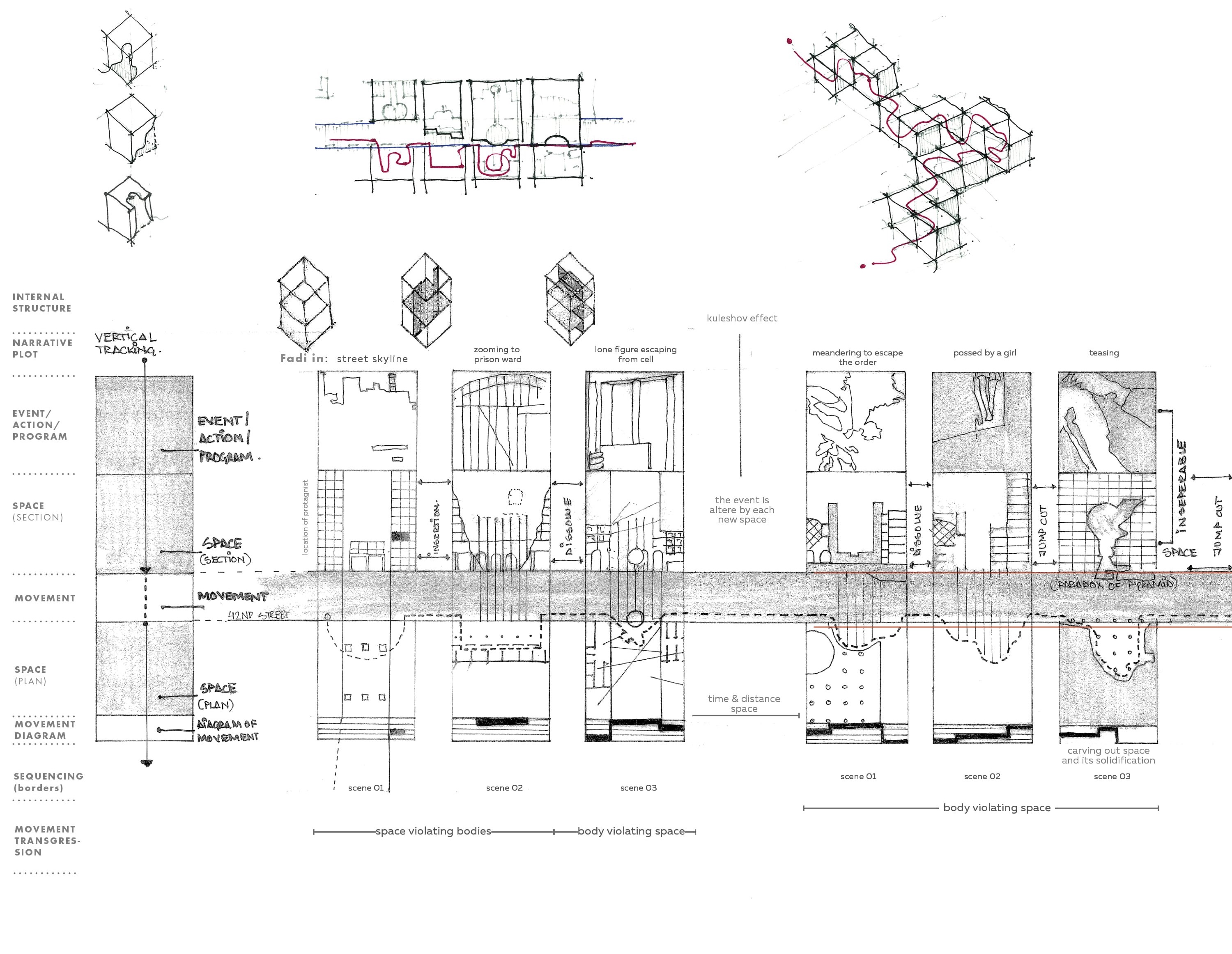 The theoretical and conceptual premise largely questions the nature of space and its use through varies concepts, encompassing a heterogeneous array of other modes of thinking such as cinema & its tools, literary criticism, philosophy, and other disciplines.
